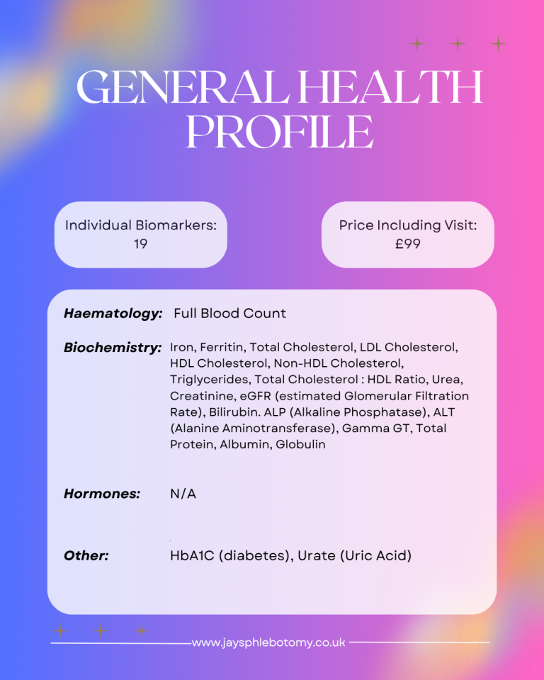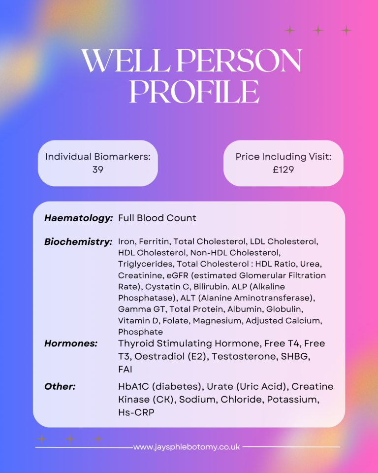 All Blood Test Packages Available At Jay's Phlebotomy in Lincolnshire